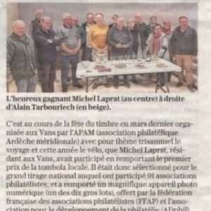Association philatélique : le gros lot de la tombola nationale remis à un Ardéchois.