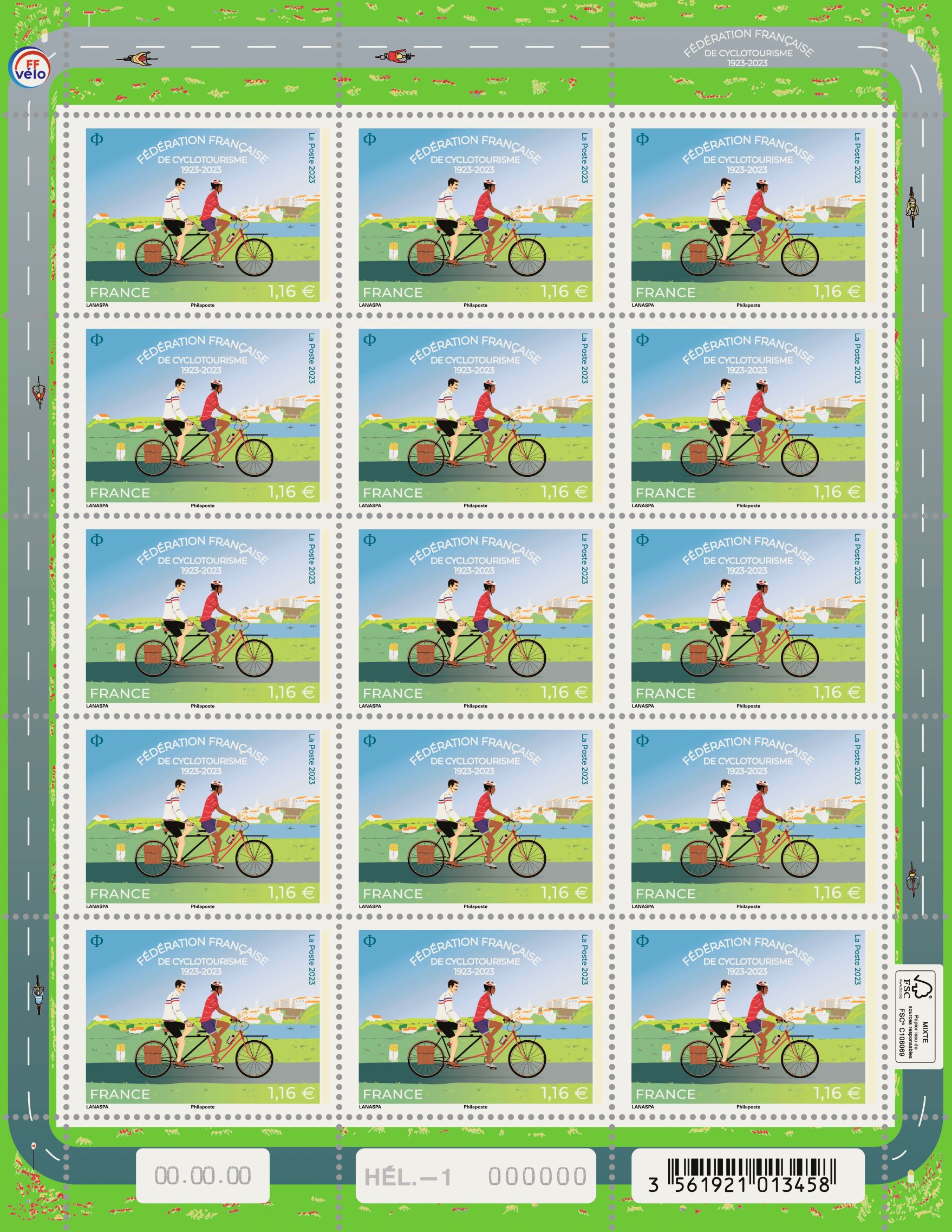 La Poste émet un timbre à l’occasion du centenaire de la Fédération française de cyclotourisme.