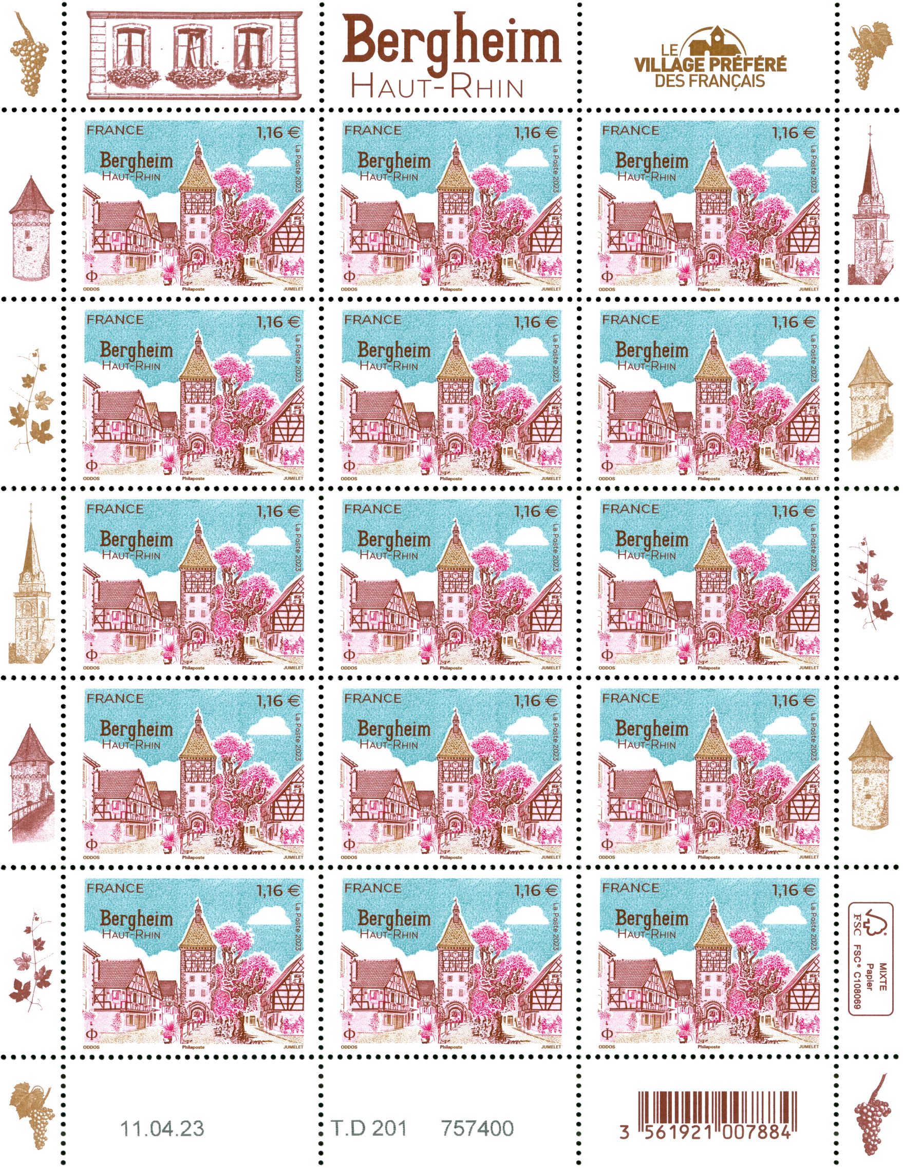 Format de vente : Timbre émis en mini-feuilles de 15 timbres