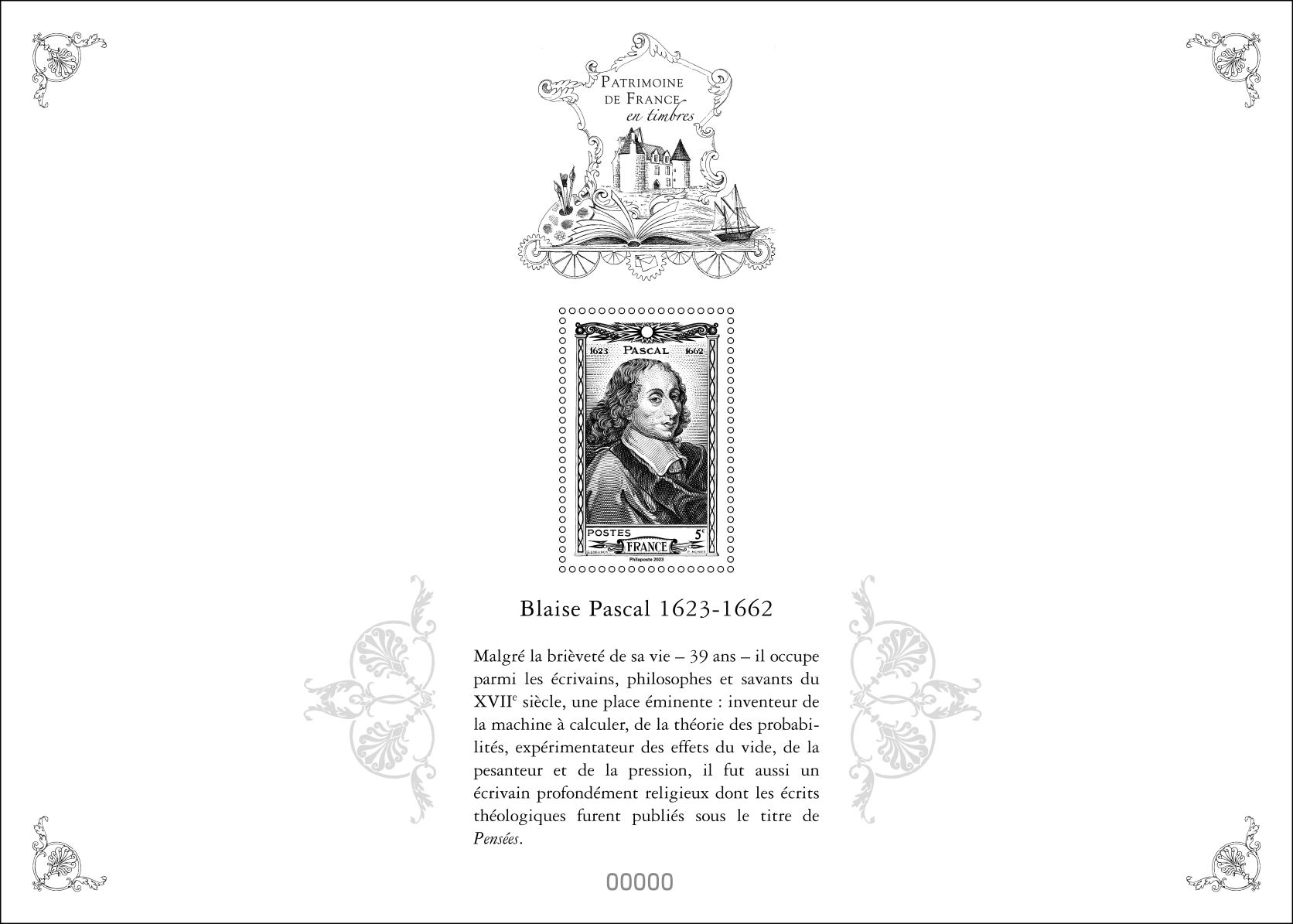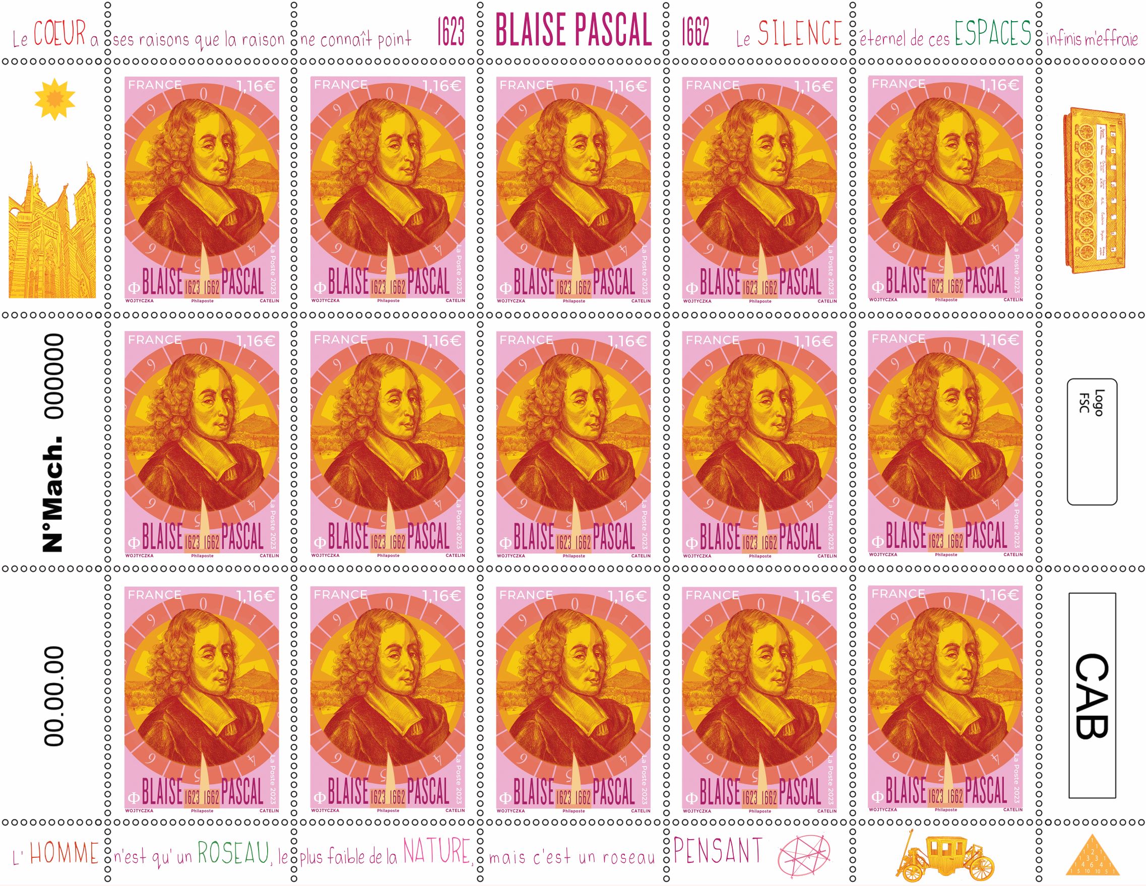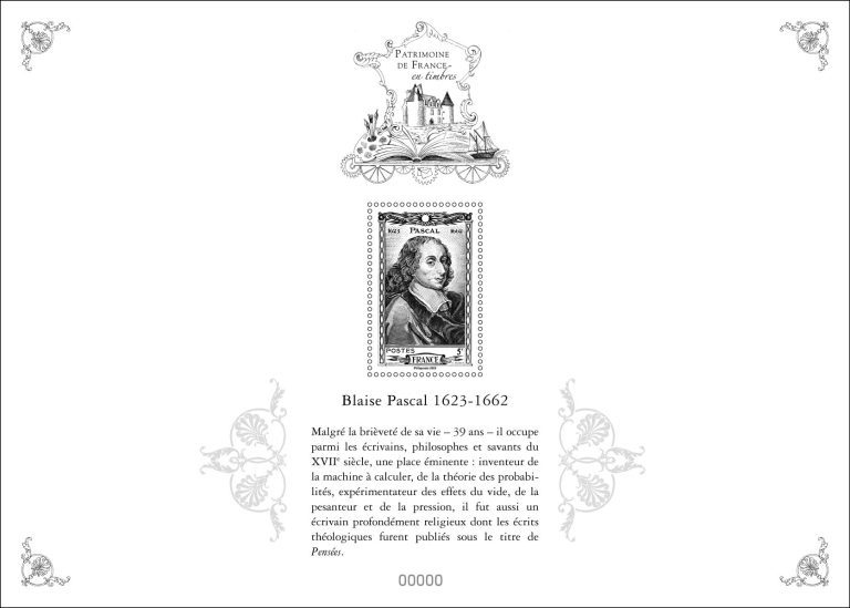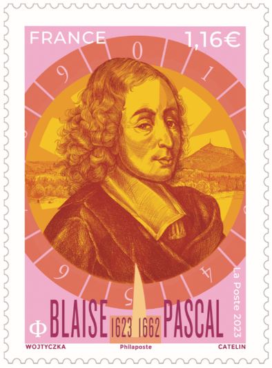 La Poste émet un timbre à l’effigie de Blaise Pascal, mathématicien, physicien, inventeur, philosophe, moraliste et théologien français à l’occasion du 400ème anniversaire de sa naissance.
