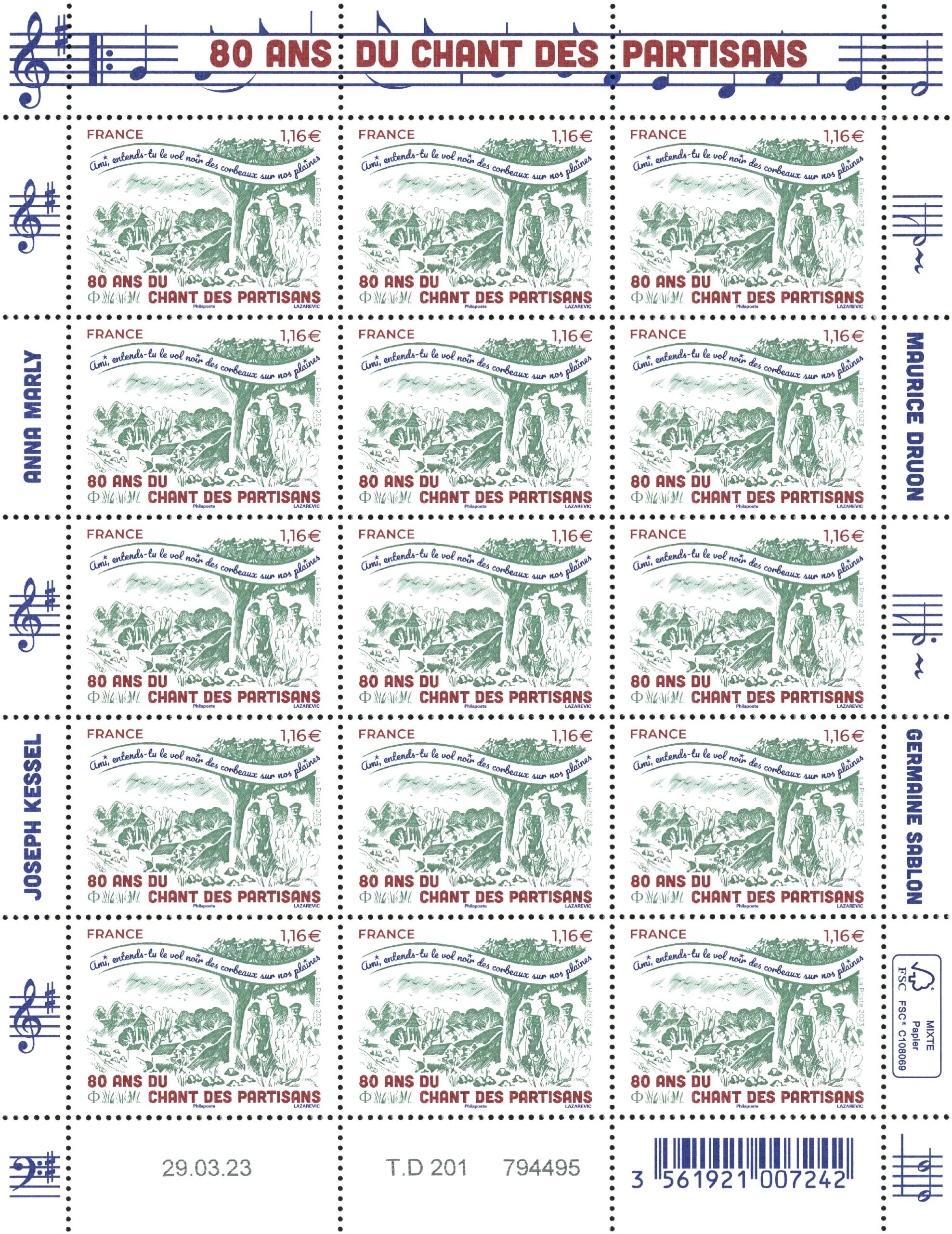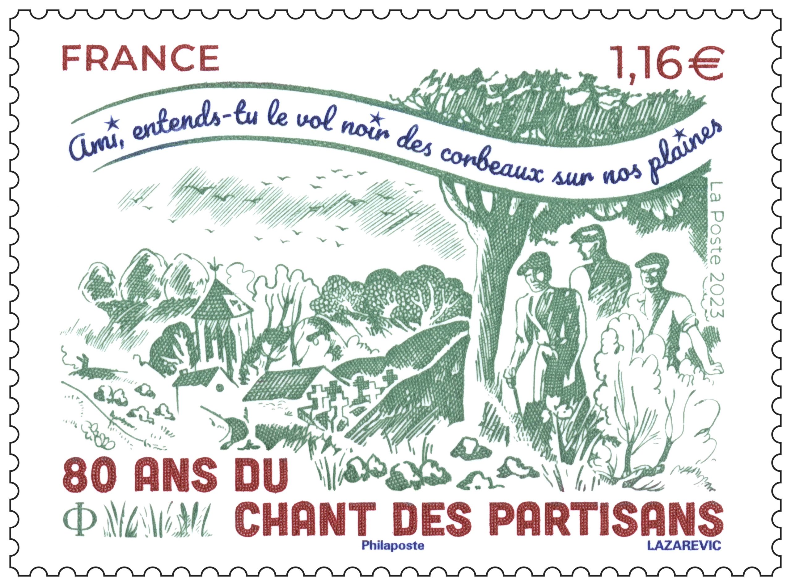 La Poste émet un timbre à l’occasion des 80 ans du « Chant des partisans », l’hymne de la Résistance française, pendant la deuxième Guerre Mondiale.