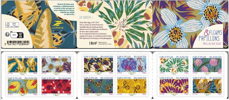 La Poste émet un carnet de 12 timbres-poste illustré par des dessins d’Émile-Allain Séguy, créateur de motifs d’ornements dans le style Art déco.