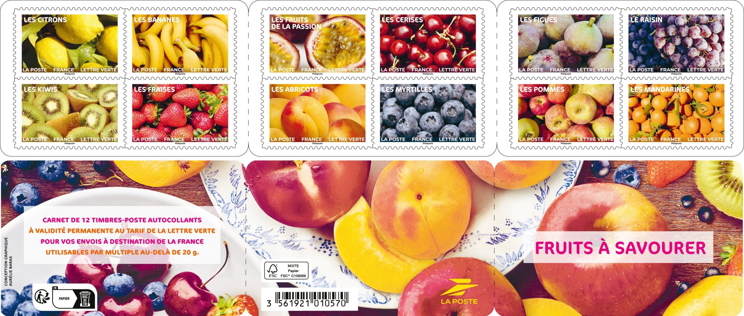 La Poste émet un carnet de 12 timbres-poste illustré par des photographies de fruits à savourer sans modération.