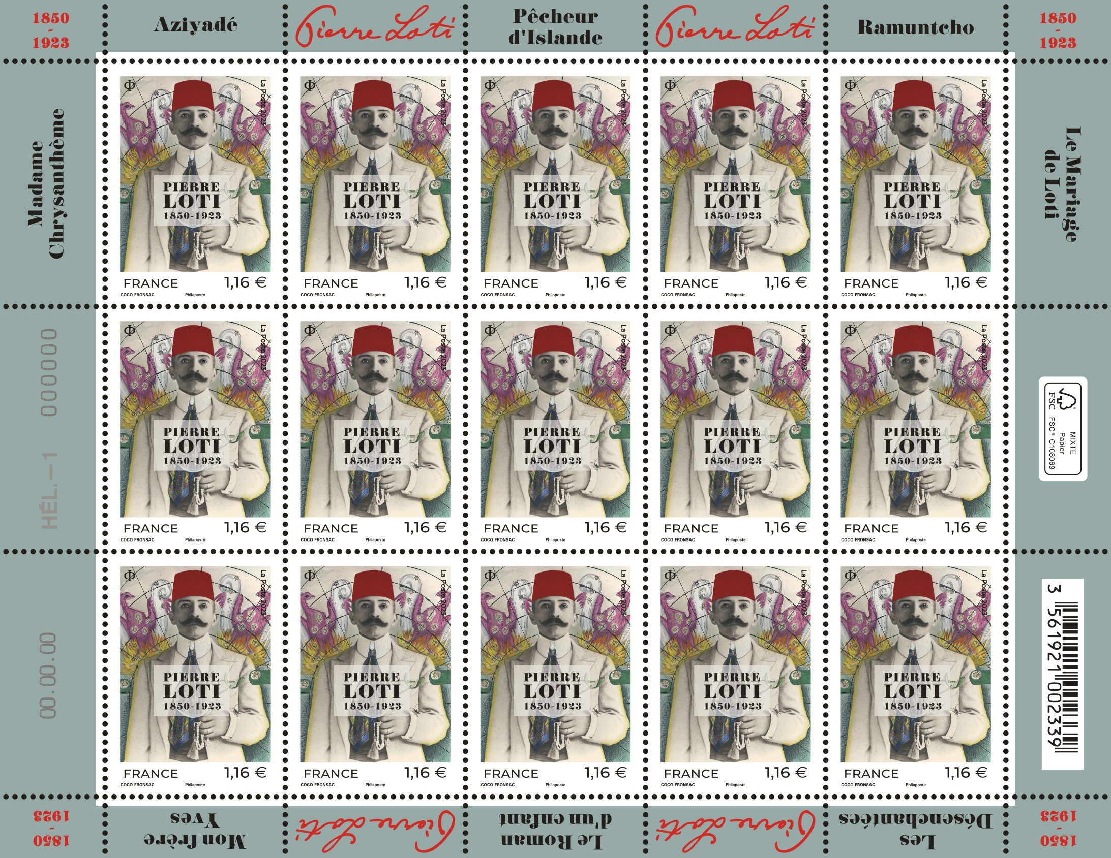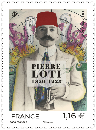 La Poste émet un timbre à l’effigie de Pierre Loti, écrivain, dessinateur, photographe et officier de marine français à l’occasion du centenaire de sa disparition.