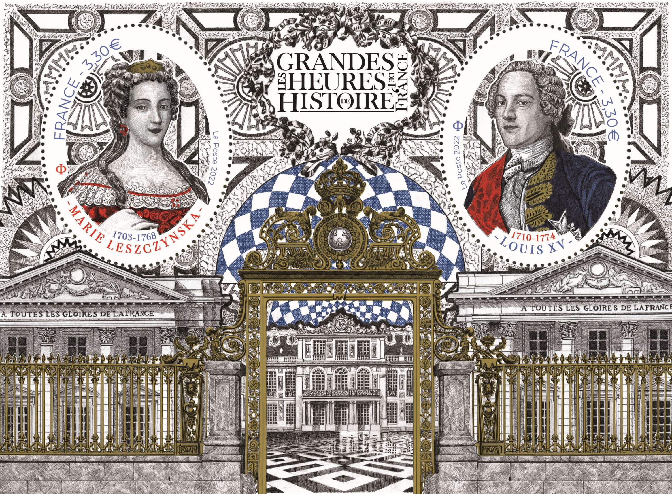 La Poste émet un bloc de la série les Grandes Heures de l’Histoire de France initiée en 2012 à l’effigie de Marie Leszcynska et de Louis XV.