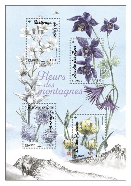 La Poste émet un bloc de timbres, un timbre et un souvenir « Fleurs des montagnes » dans la série Faune et Flore.