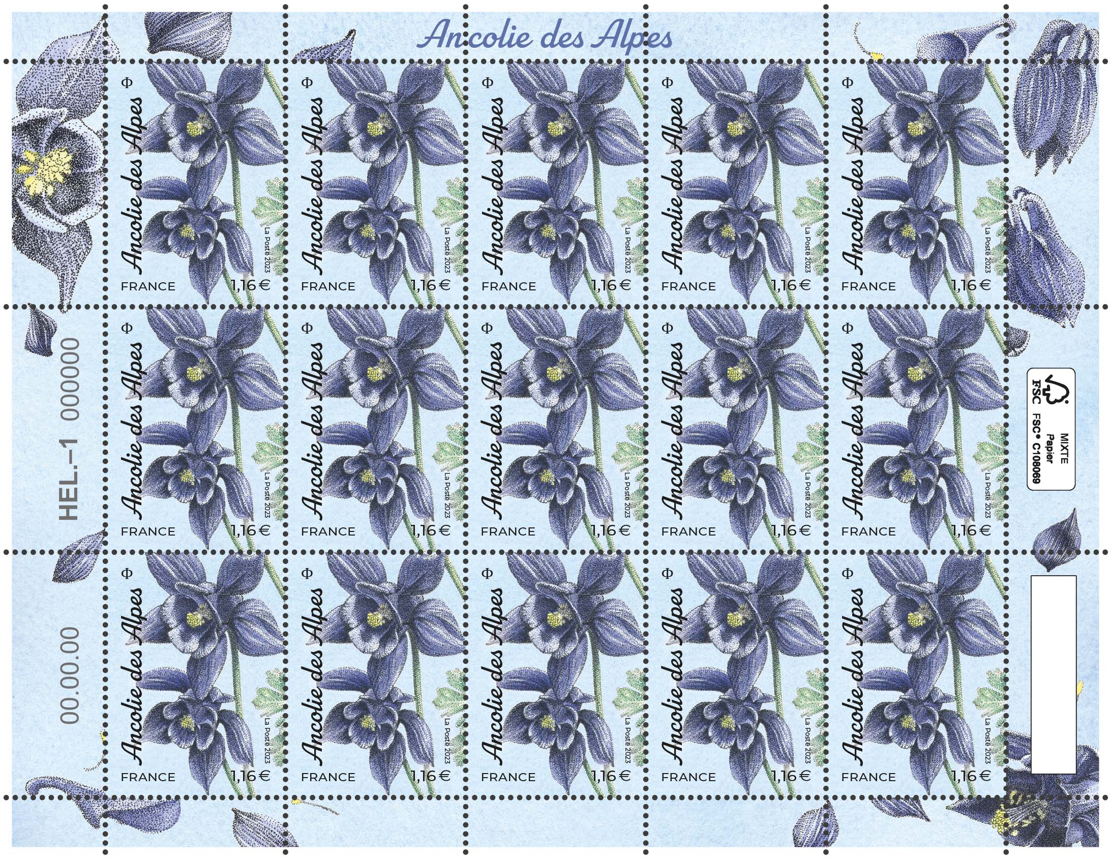 Format de vente : Timbre émis en mini-feuilles de 15 timbres