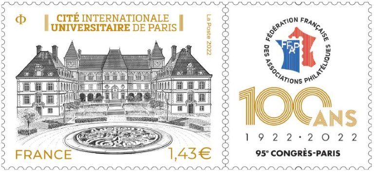 La Poste émet un timbre avec vignette attenante sur la Cité internationale universitaire de Paris à l’occasion du 95ème congrès et des 100 ans de la FFAP.