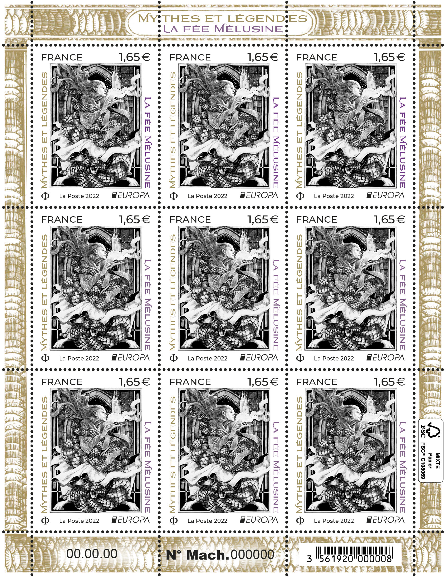 Format de vente : Timbre émis en mini-feuille de 9 timbres