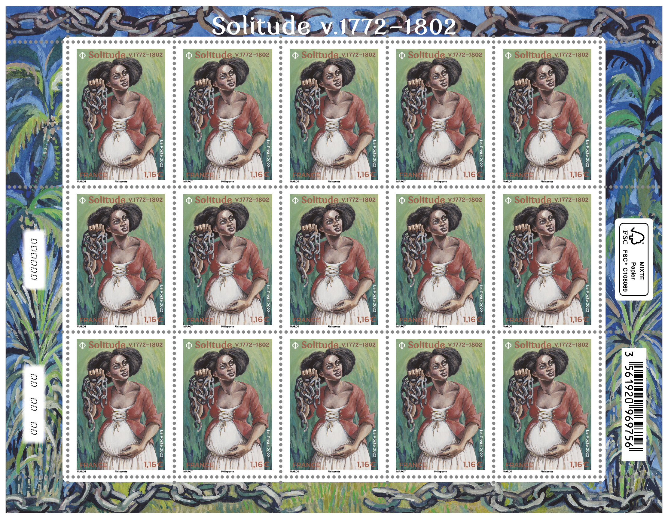 La Poste émet un timbre à l’effigie de Solitude, femme guadeloupéenne, résistante à l’esclavage, exécutée en 1802 par les forces coloniales françaises.