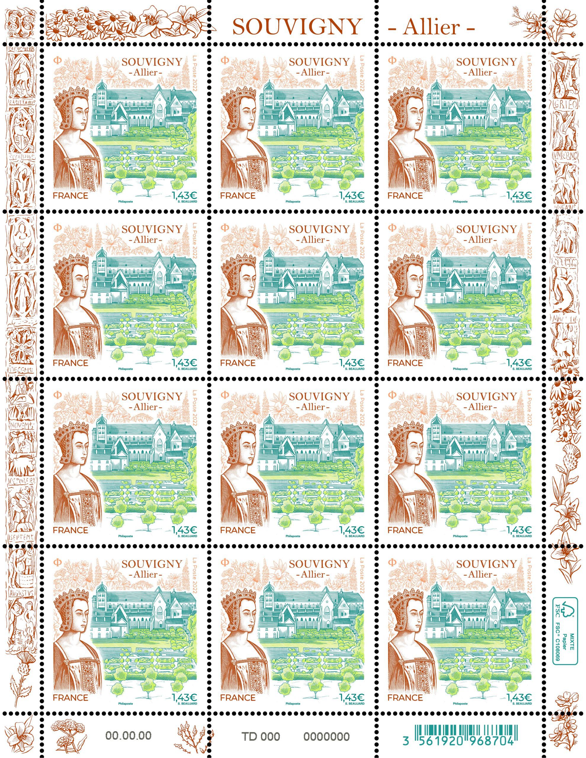 Format de vente : Timbre émis en mini-feuille de 12 timbres