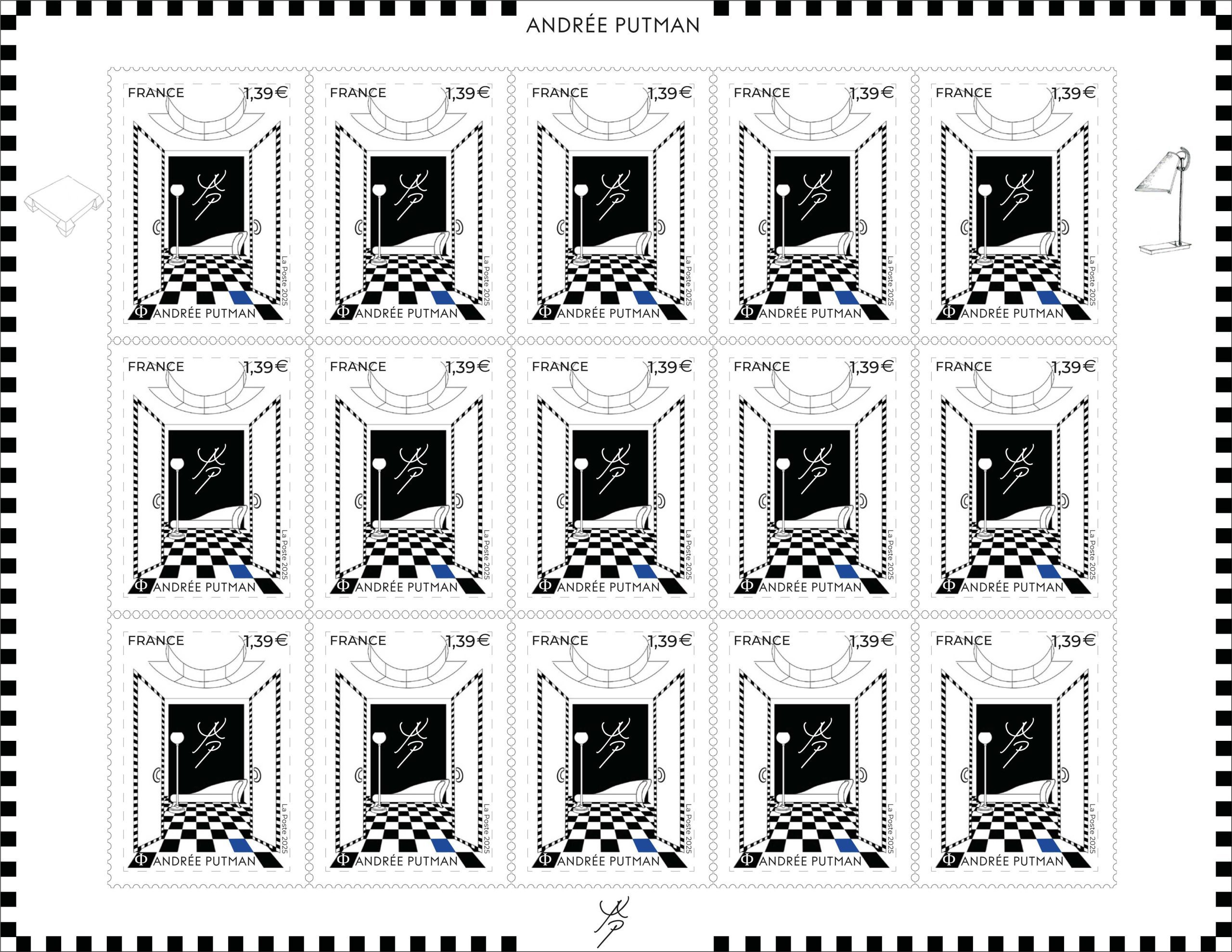 La Poste émet un timbre illustré par des éléments de l’univers inimitable d’Andrée Putman, architecte d’intérieur et designer de renommée internationale, à l’occasion du centenaire de sa naissance.