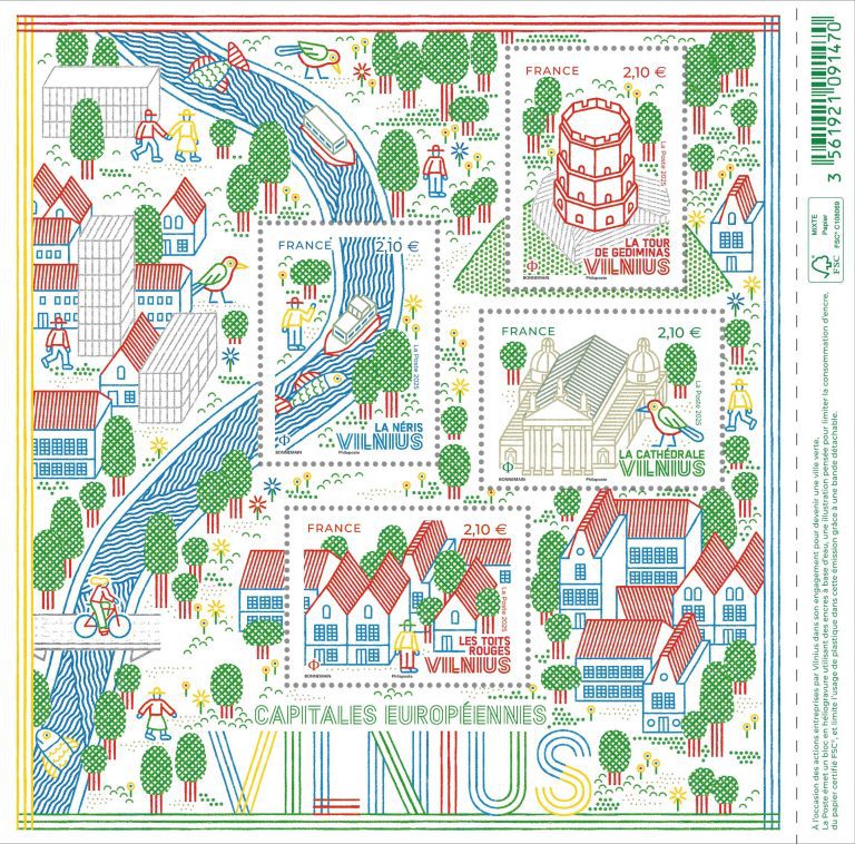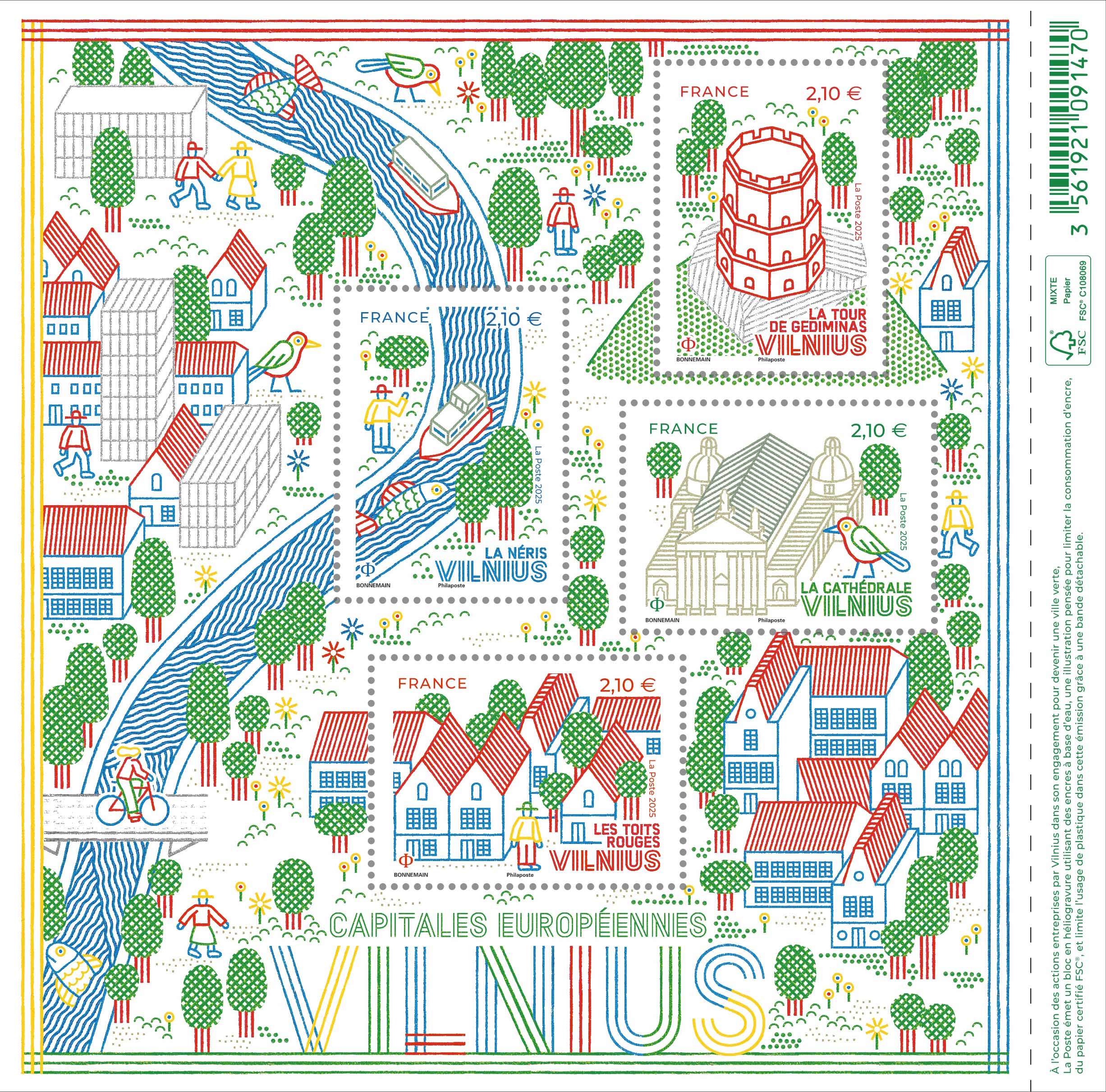 La Poste vous invite à continuer la balade à travers les capitales européennes, avec un bloc de 4 timbres consacré à Vilnius. Cette série a été initiée en 2002 avec Rome.