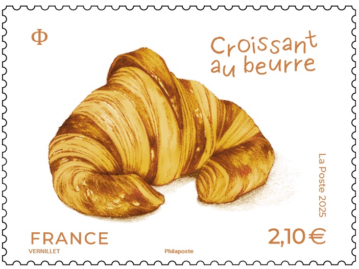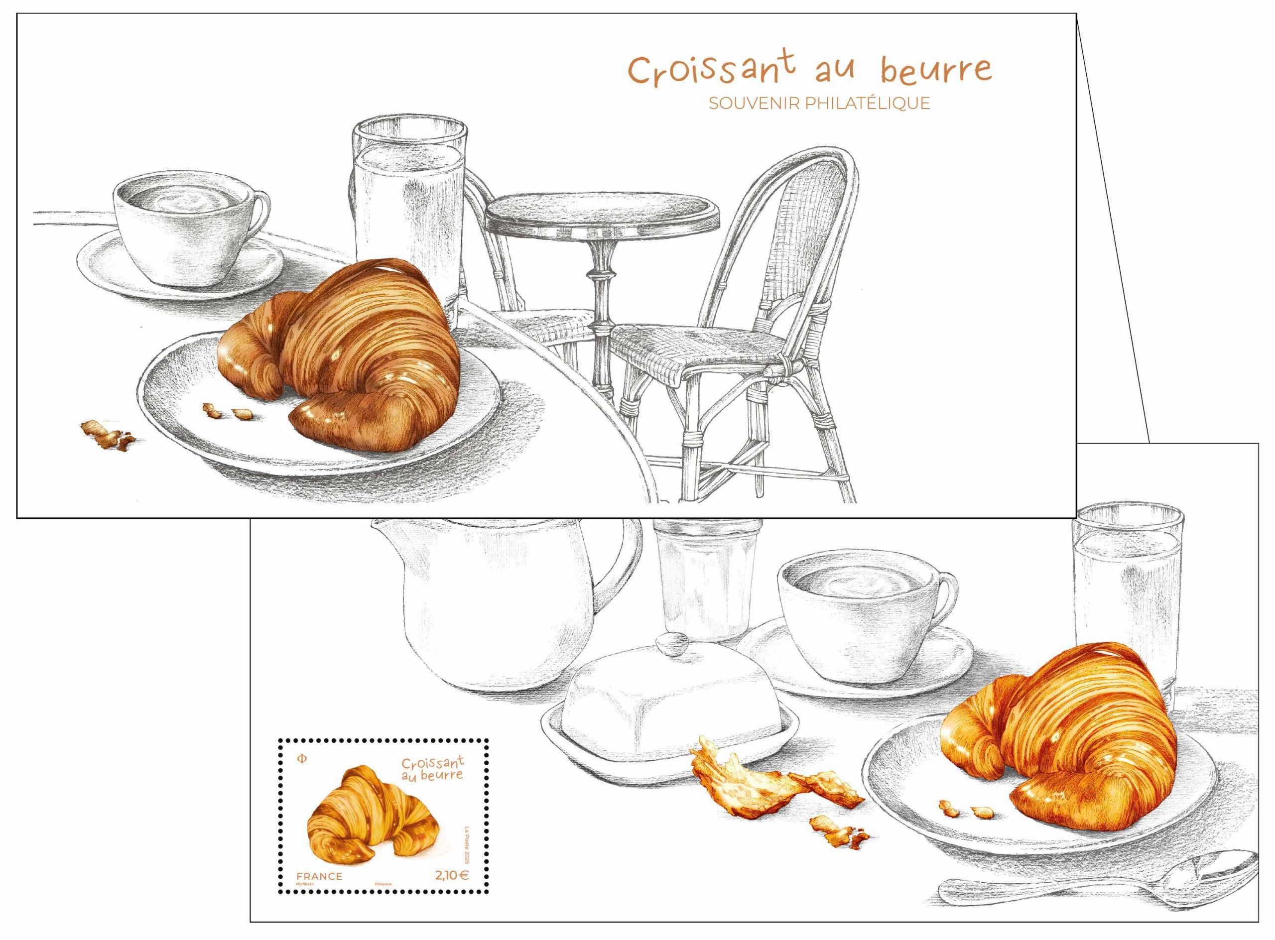 La Poste émet un timbre et un souvenir philatélique odorants, illustrés par un délicieux croissant au beurre, un classique de la boulangerie artisanale française.