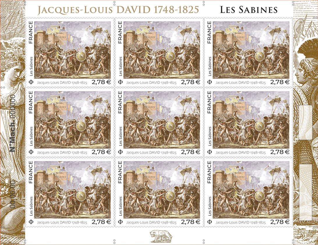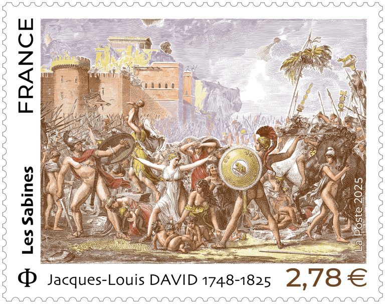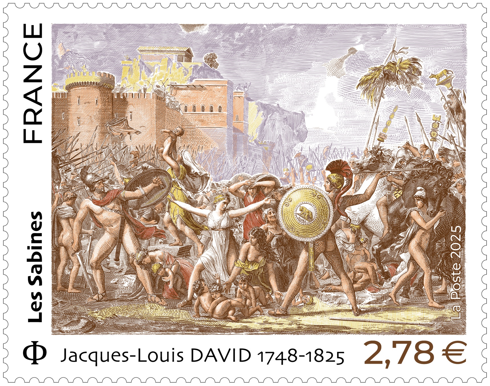 La Poste émet un timbre de la série artistique d’une œuvre de Jacques-Louis David « Les Sabines », à l’occasion du bicentenaire de sa disparition.