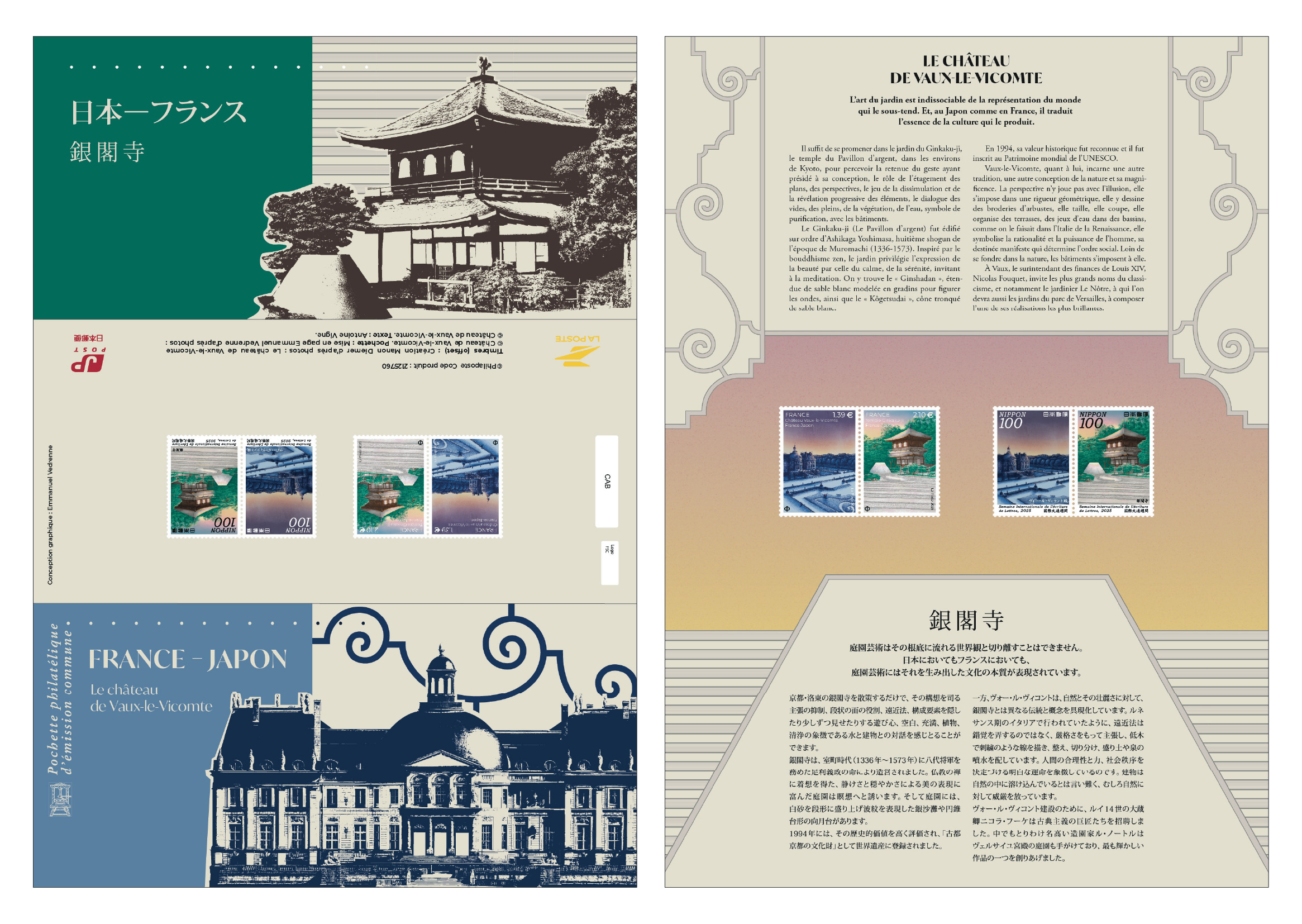 La France et le Japon émettent deux timbres communs illustrés par les jardins remarquables du château de Vaux-le-Vicomte et du temple Ginkaku-ji.