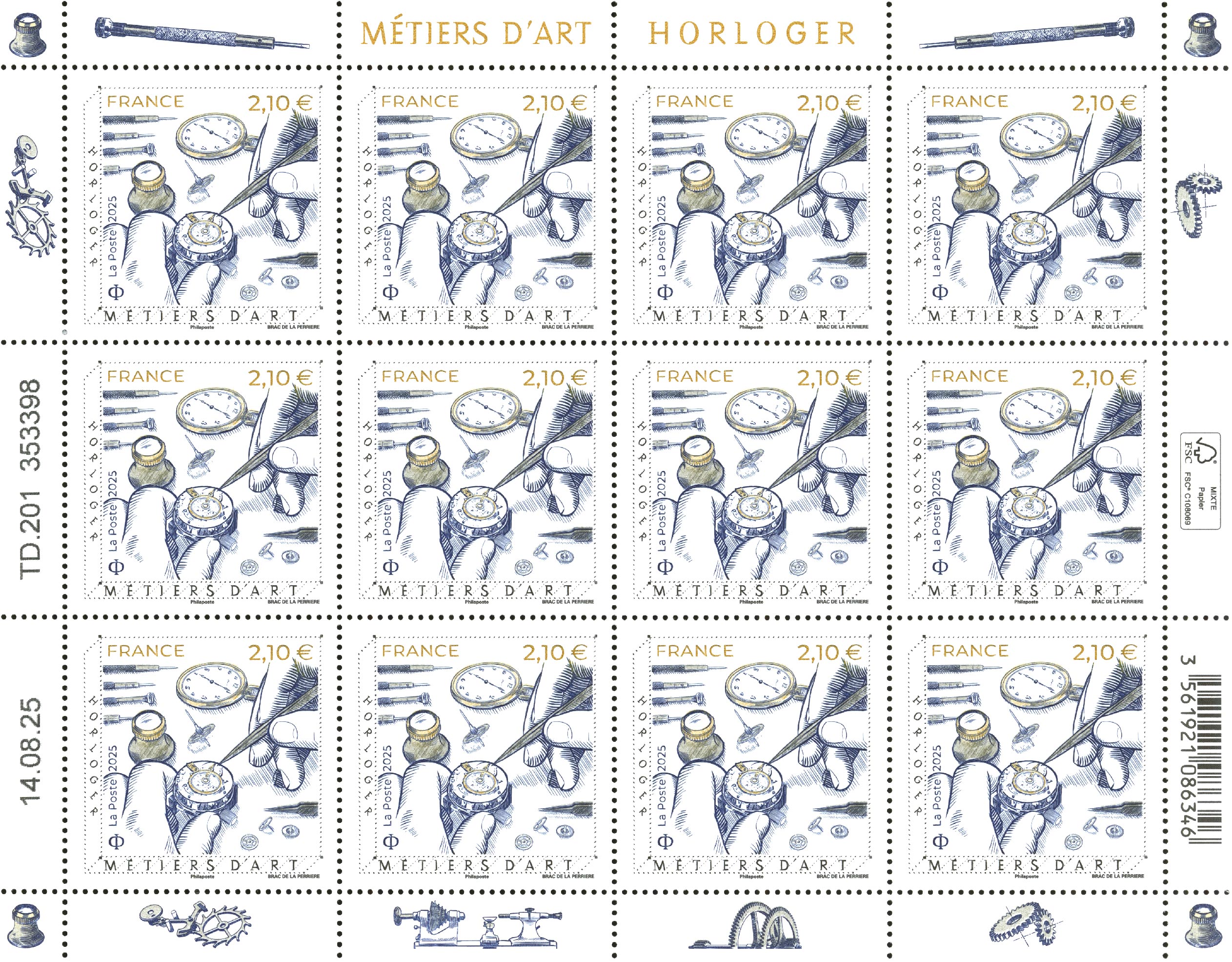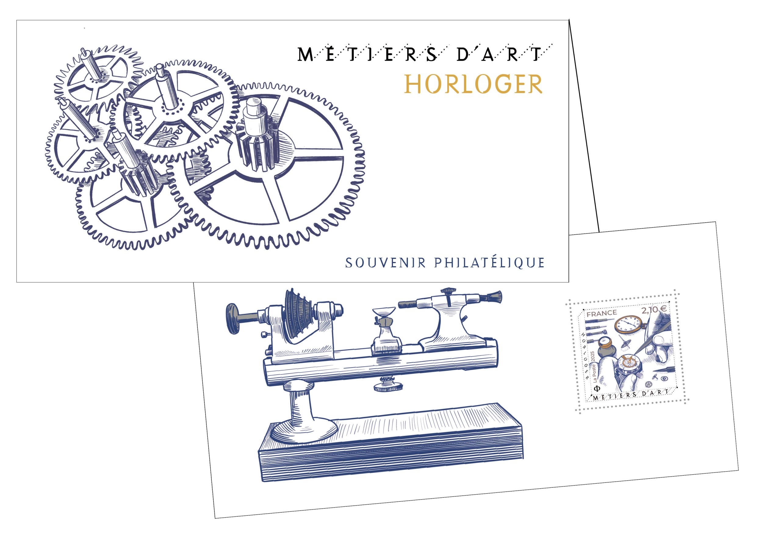 La Poste émet un timbre dans la série Métiers d’Art, initiée en 2016, c’est le savoir-faire de l’horloger qui est mis à l’honneur. Il succède à celui du Mosaïste.