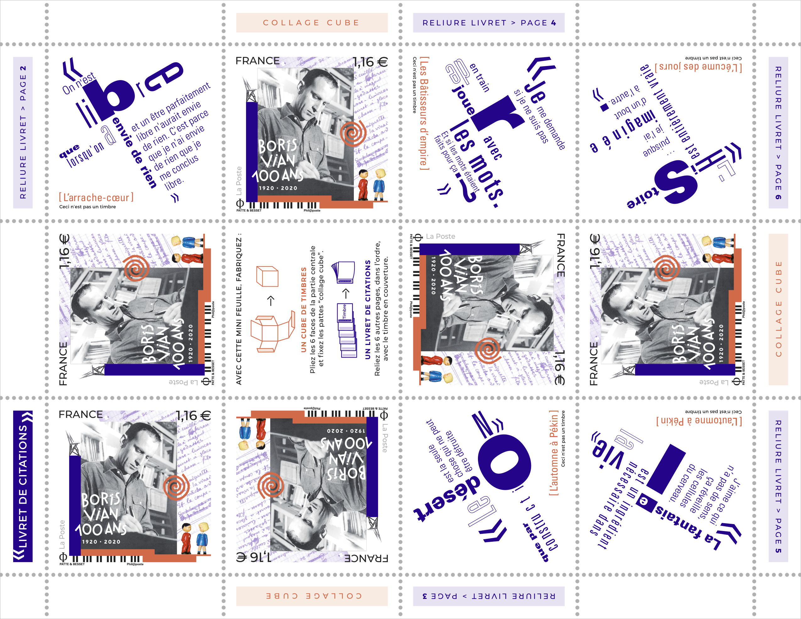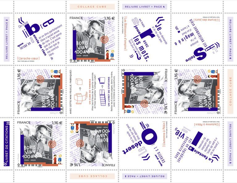 La Poste émet une mini-feuille sur Boris Vian à l’occasion du centenaire de sa naissance.