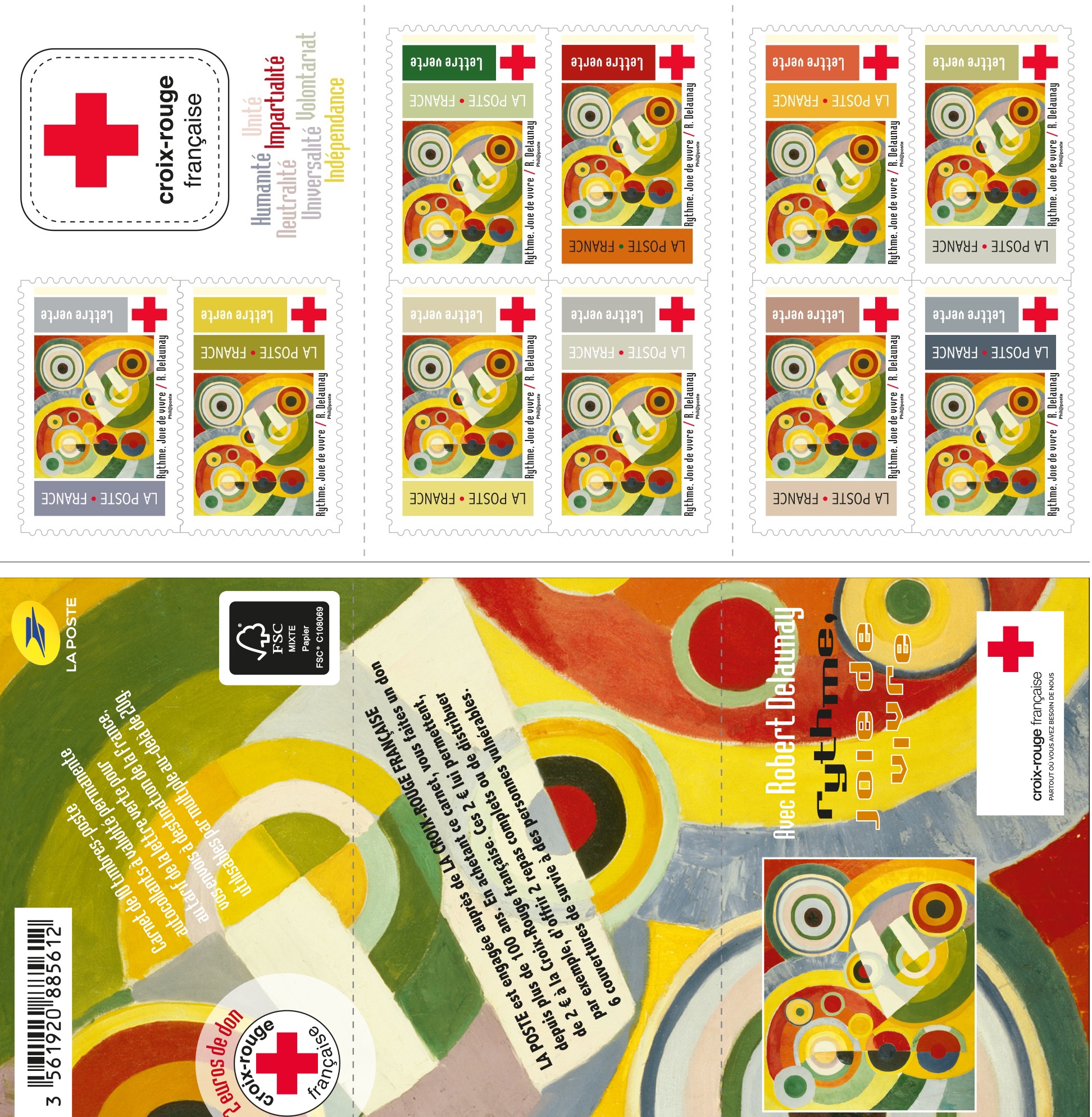 Rythme, Joie de vivre, cette œuvre de l’artiste Robert Delaunay illustre les timbres et la couverture du carnet dédié à la Croix-Rouge française de cette année. Cette huile sur toile de 200 mm sur 228 mm qui date de 1930 est conservée au Musée d’art moderne de Paris.