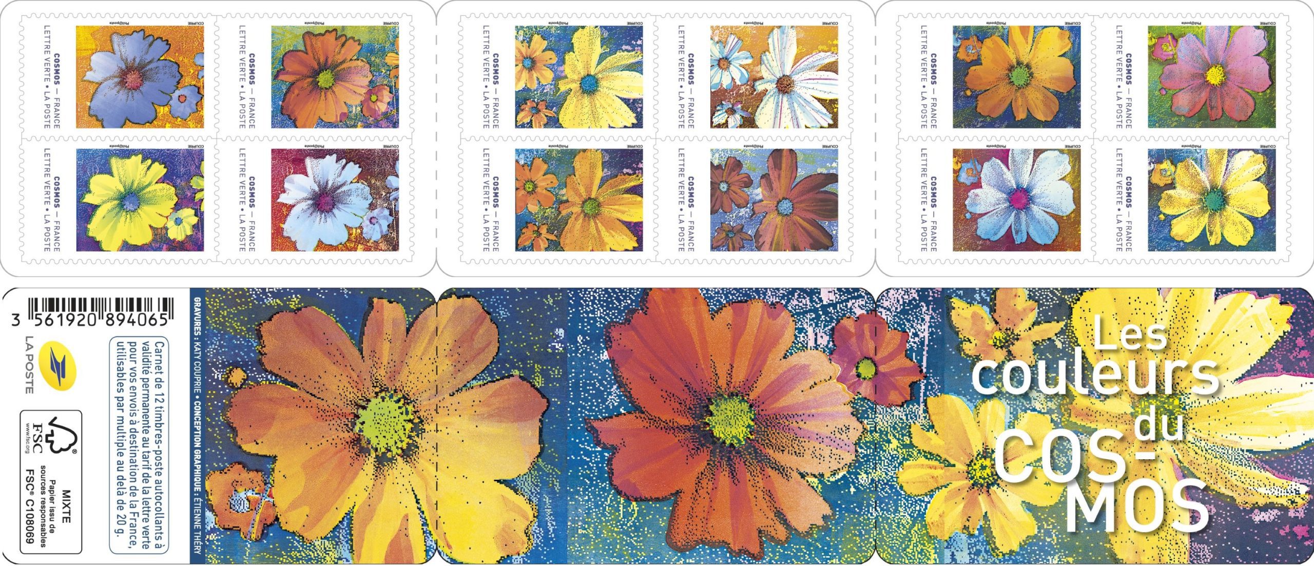 La Poste émet un carnet de timbres-poste illustré par des cosmos. Rêvez et offrez toutes les couleurs du cosmos !