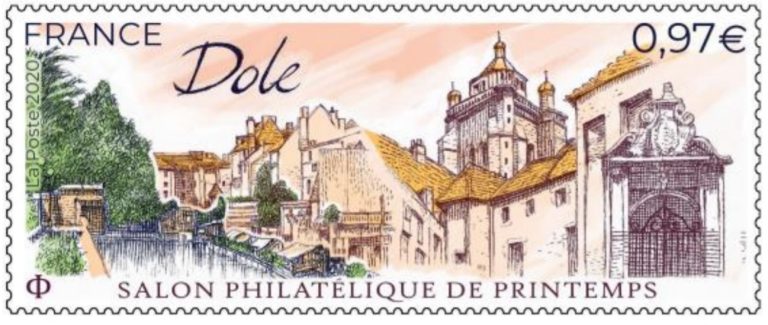 A l’occasion du 41ème Salon de printemps, qui se déroulera à Dole (Jura) du 27 au 29 mars 2020, La Poste émet un timbre sur la ville hôte, patrie de Louis Pasteur.