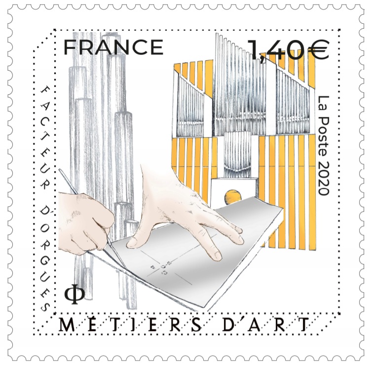 La Poste émet un nouveau timbre dans la série métiers d’art initiée en 2016. Après le joaillier, le sculpteur sur pierre, le ferronnier, l’ébéniste, le maroquinier, le tailleur de cristal et le relieur, c’est le savoir-faire du facteur d’orgues qui est à l’honneur.