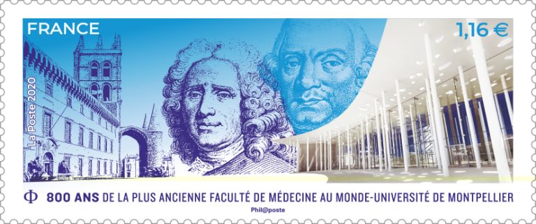 La Poste émet un timbre à l’occasion des 800 ans de la plus ancienne faculté de médecine au monde : l’Université de Montpellier.