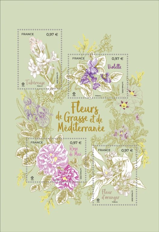 La Poste émet un bloc de timbres-poste dans la série « Faune et Flore » représentant quatre fleurs emblématiques de Grasse.