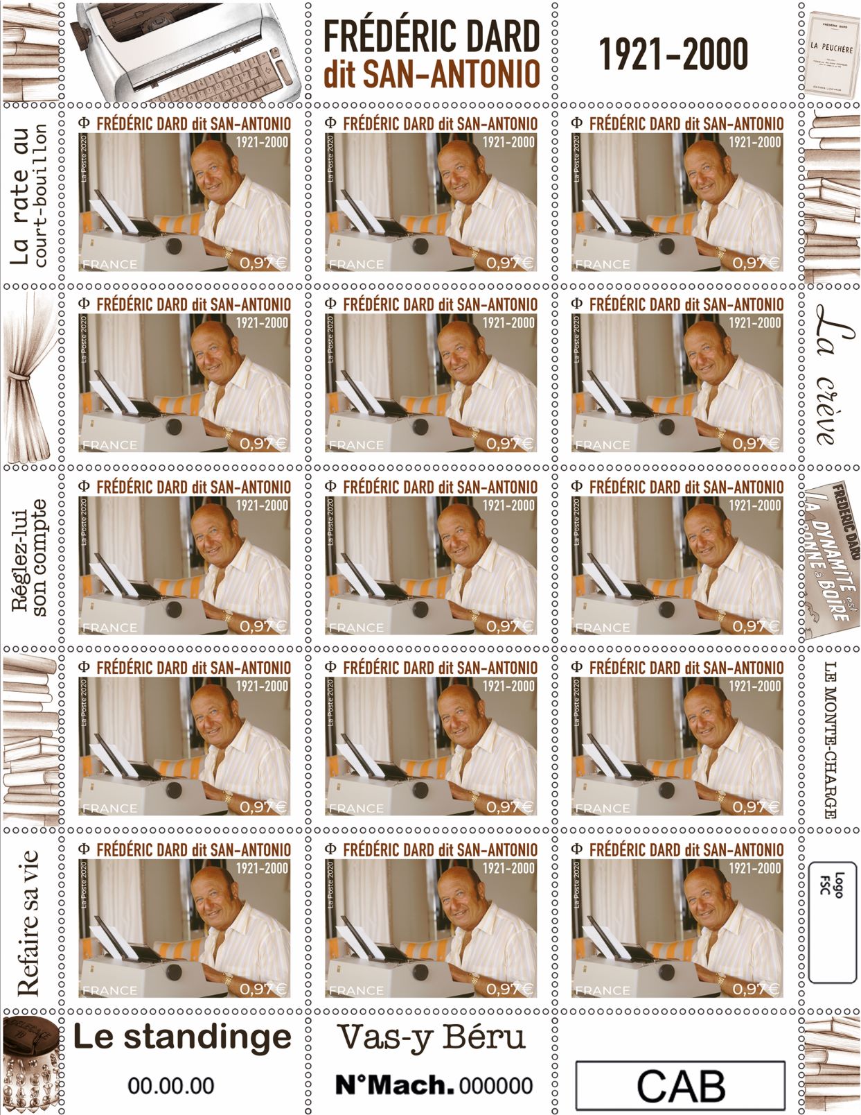 La Poste émet un timbre à l’effigie de Frédéric Dard, dit San Antonio, à l’occasion du 20ème anniversaire de sa disparition.