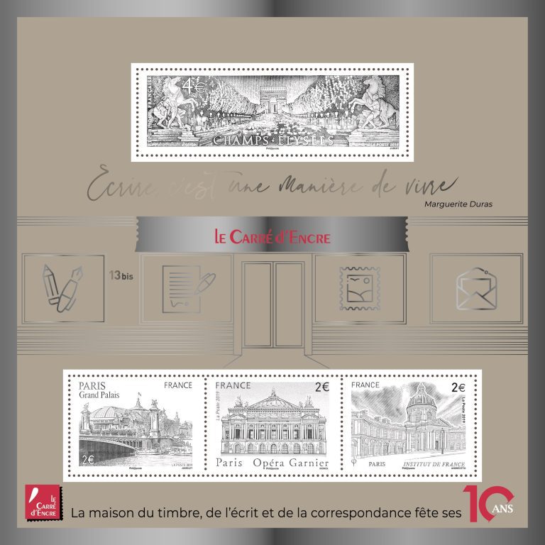 Boutique unique en France dédié à la philatélie et à l’écrit, le Carré d’Encre accueille tous les événements Premier Jour, ventes anticipées des émissions de timbres, avec le très recherché cachet d’oblitération.