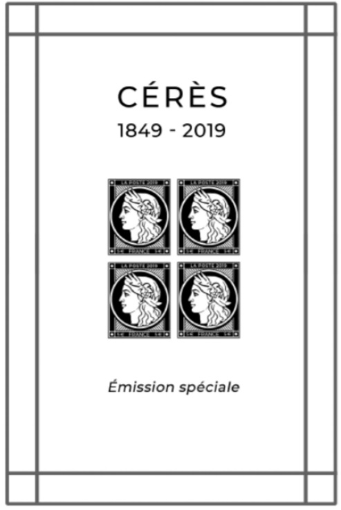 - Un livre retraçant l’histoire du premier timbre français dans lequel est inséré un bloc de timbres émis exclusivement pour cet ouvrage. Ce bloc est composé de 25 timbres Cérès avec trois valeurs 0,20 € 0,40 € et 1€. Il est daté et numéroté et comporte en case dix-huit un tête-bêche du timbre Cérès.
