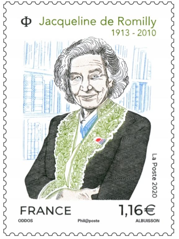 La Poste émet un timbre à l’effigie de Jacqueline de Romilly à l’occasion du 10ème anniversaire de sa disparition.