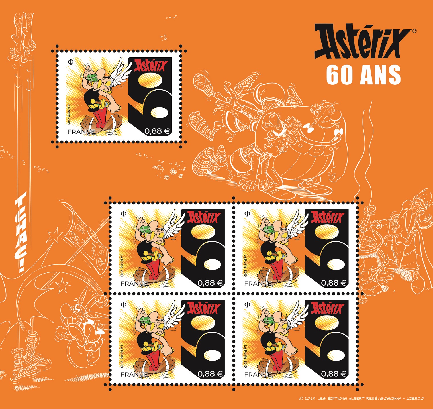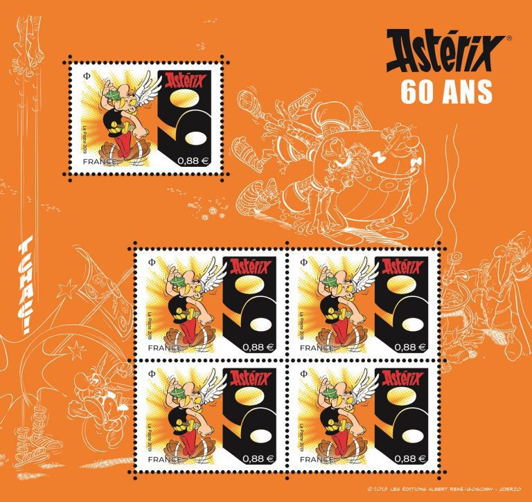La Poste émet, dans la série Jeunesse, une mini-feuille de cinq timbres pour fêter les 60 ans d’Astérix et les 30 ans du Parc Astérix.