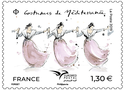 La Poste émet le timbre Costumes de Méditerranée qui concourt au plus beau timbre de l’Union EUROMed Postal.