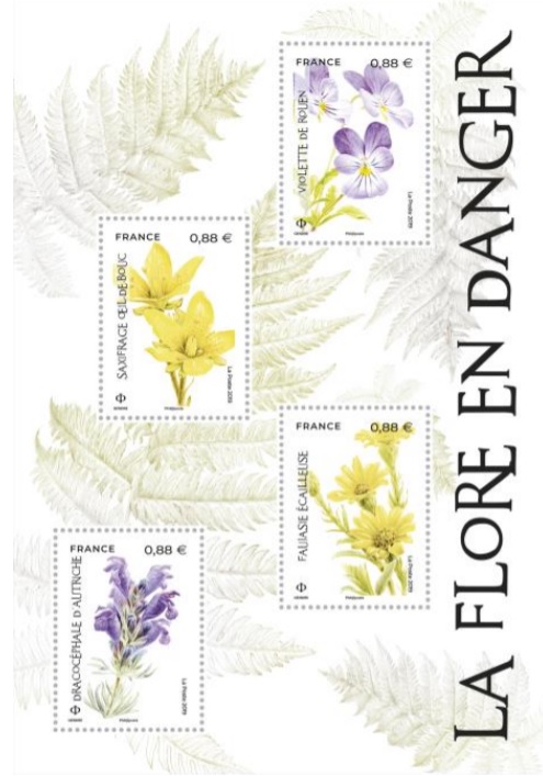 La Poste émet, dans la série Nature, un timbre sur la violette de Rouen ainsi qu’un bloc sur la flore en danger.