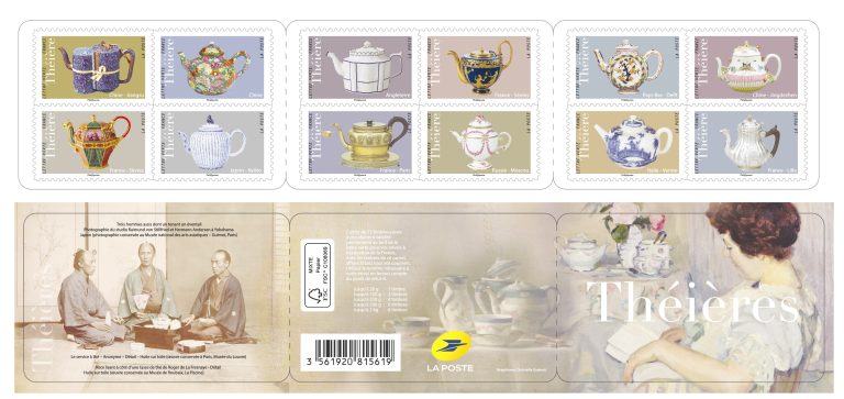 Si le thé vient d’Asie, l’art d’infuser s’est répandu en Europe avec un étonnant raffinement dont témoignent la diversité et la beauté des théières. Douze théières produites dans différents pays illustrent chacune un timbre-poste. Ces théières ont été fabriquées au Japon, en Chine, en Italie, en Angleterre, aux Pays-Bas et en France. La couverture montre le moment de pause et de dégustation du thé.