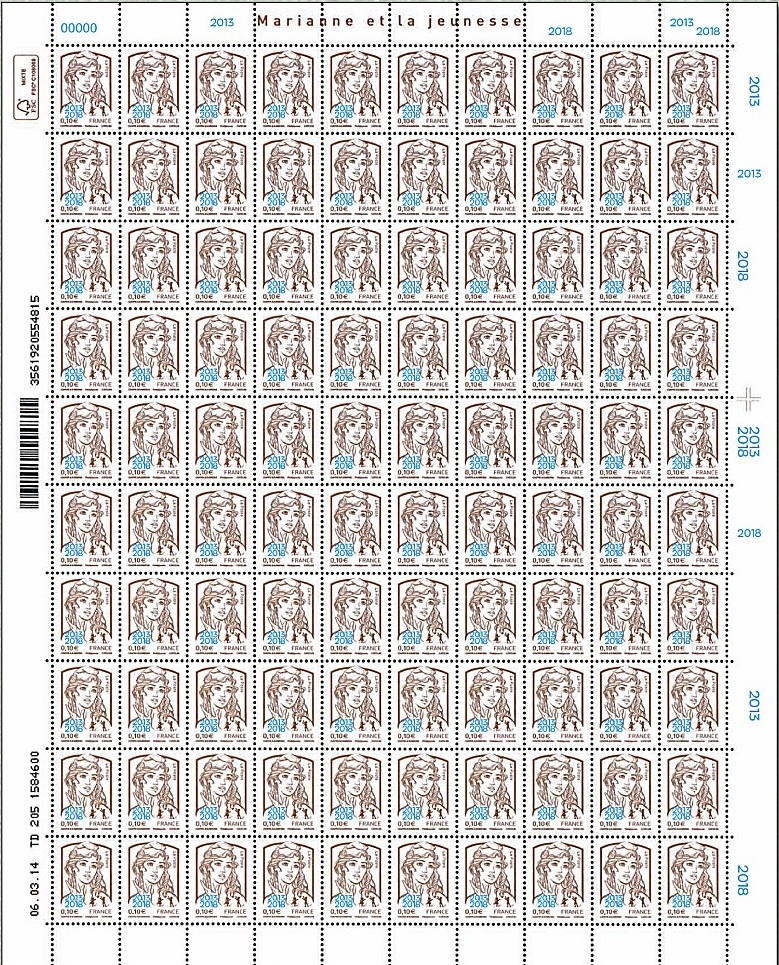 A l’occasion de Paris Philex 2018, La Poste met en vente, de manière indivisible, 2 feuilles différentes de la « Marianne & la jeunesse » surchargées de la mention « 2013-2018 » (sur chaque timbre et dans les marges des feuilles.