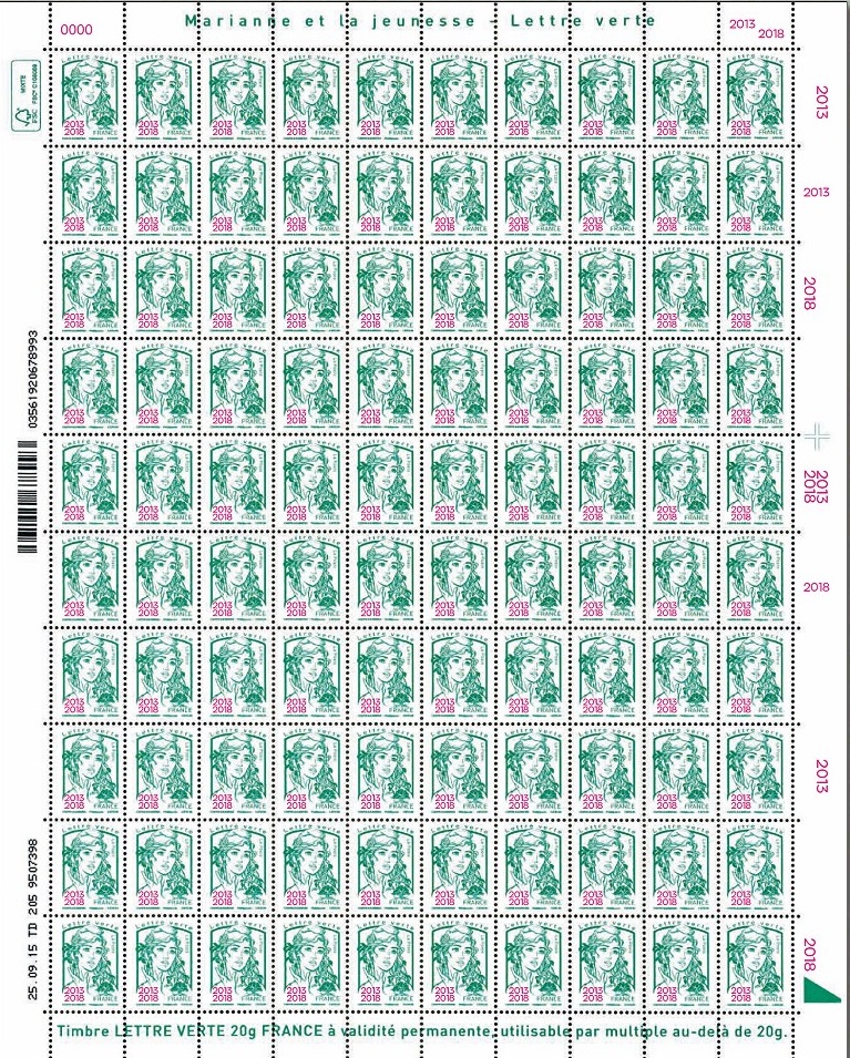Seules 12500 exemplaires de la feuille à 0,10 € et 2500 exemplaires de la feuille Lettre verte sont mises en vente.