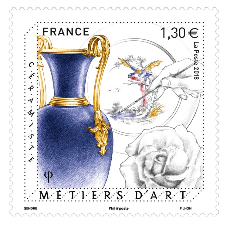 À l’occasion des Journées du Patrimoine 2018, La Poste émet un nouveau timbre dans la série métiers d’art initiée en 2016. Après le joaillier, le sculpteur sur pierre, le ferronnier, l’ébéniste et le maroquinier c’est le savoir-faire du céramiste qui est à l’honneur.
