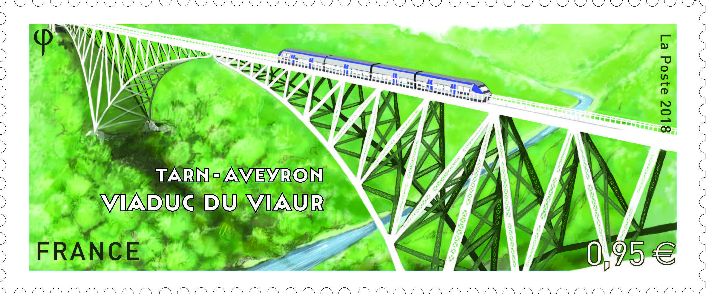 C’est le projet de la Société de construction des Batignolles et de son ingénieur Paul Bodin (dont le portrait figure sur le cachet d’oblitération) qui est retenu en 1887. Long de 460 m et haut de 116 m avec un arc central de 220 m d’envergure, le viaduc du Viaur a nécessité 3 800 tonnes d’acier, dont 160 tonnes de rivets sertis à la main, 4 000 m3 de maçonnerie et 50 tonnes de peinture. D’une longueur de 410 m pour la partie métallique, l’ouvrage comprend deux travées métalliques d’approche de 25,40 m, deux demi-arcs de rive de 69,60 m et deux demi-arcs centraux articulés en clé de 110 m.