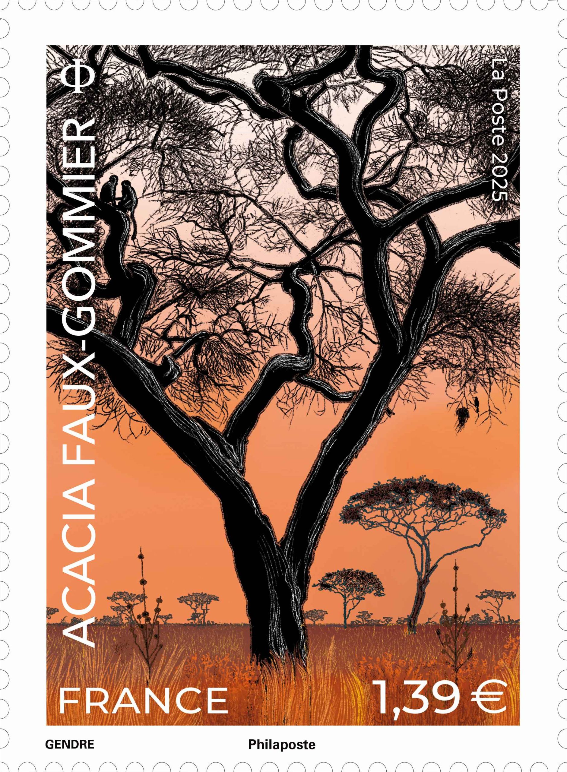 La Poste émet un timbre consacré à l’acacia faux-gommier dans la série « Faune et flore ». Cette émission s’inscrit en résonance avec le bloc de 4 timbres « Les félins » lancé en février 2025.
