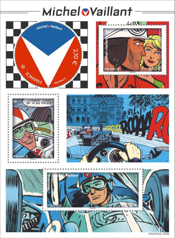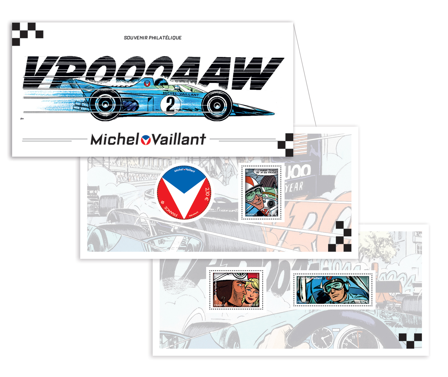 La Poste émet un bloc et un souvenir philatélique illustrés par Michel Vaillant, célèbre pilote de course et héros de la BD du même nom, dans la série bande dessinée.