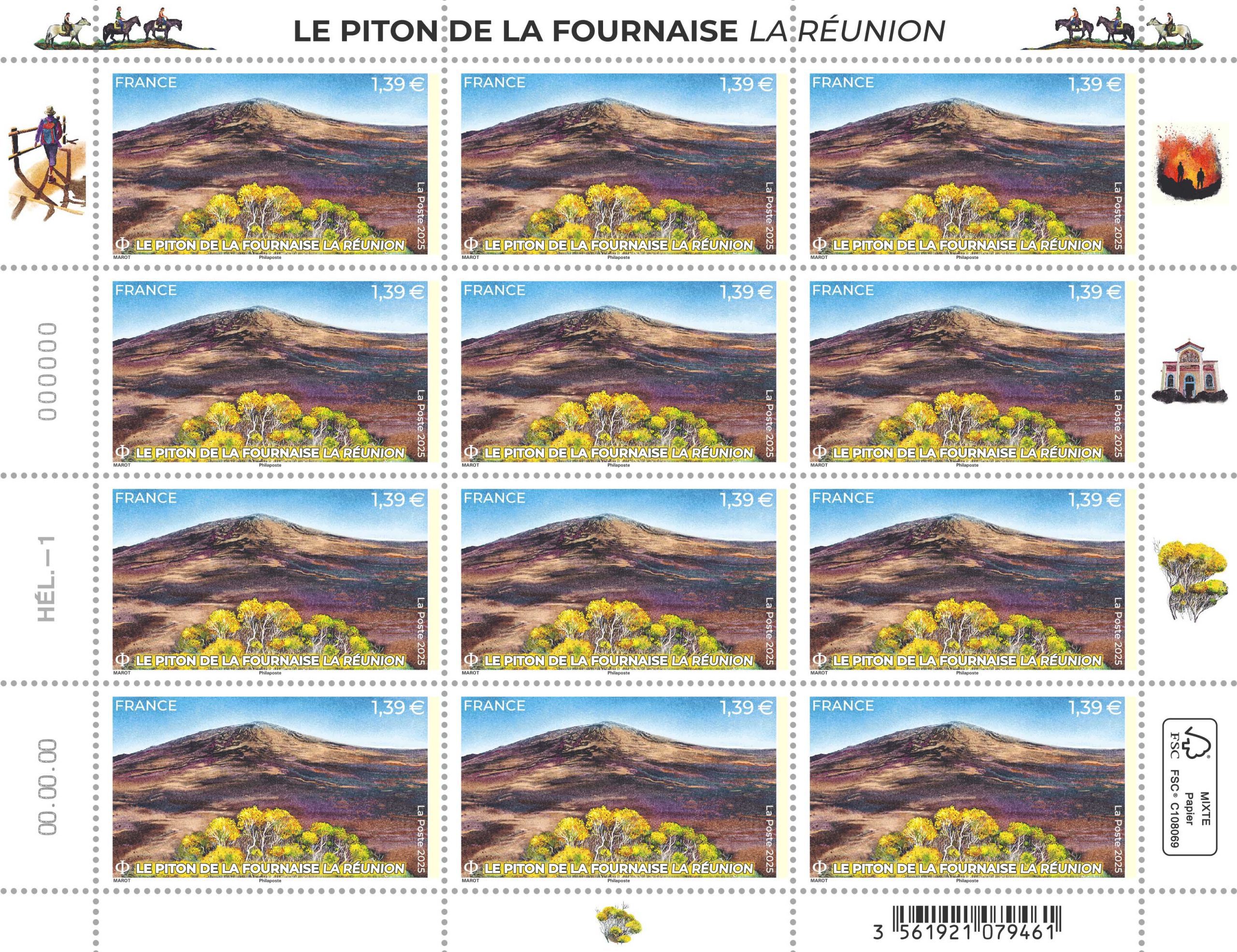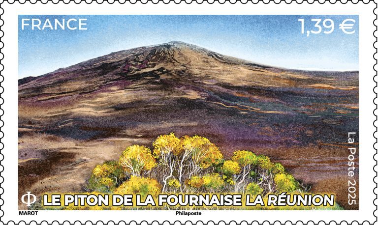 La Poste émet un timbre de la série patrimoine et tourisme sur le Piton de la Fournaise situé sur l’île de La Réunion.