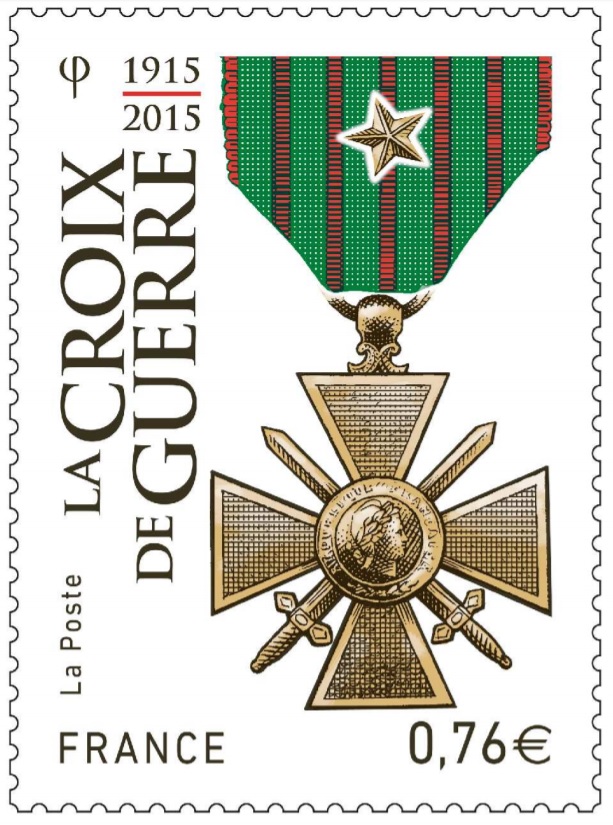 La loi du 8 avril 1915 crée une croix dite « Croix de guerre » destinée à honorer, depuis le début de la guerre de 1914-18, les citations individuelles des militaires français ou étrangers qui avaient obtenu les citations requises, les civils pouvaient aussi la recevoir dans les mêmes conditions. Enfin, les villes martyres, les villages entièrement détruits ou les cités ayant résisté héroïquement se verront attribuer la Croix de guerre, qui figurera à la place d’honneur dans leurs armoiries.
