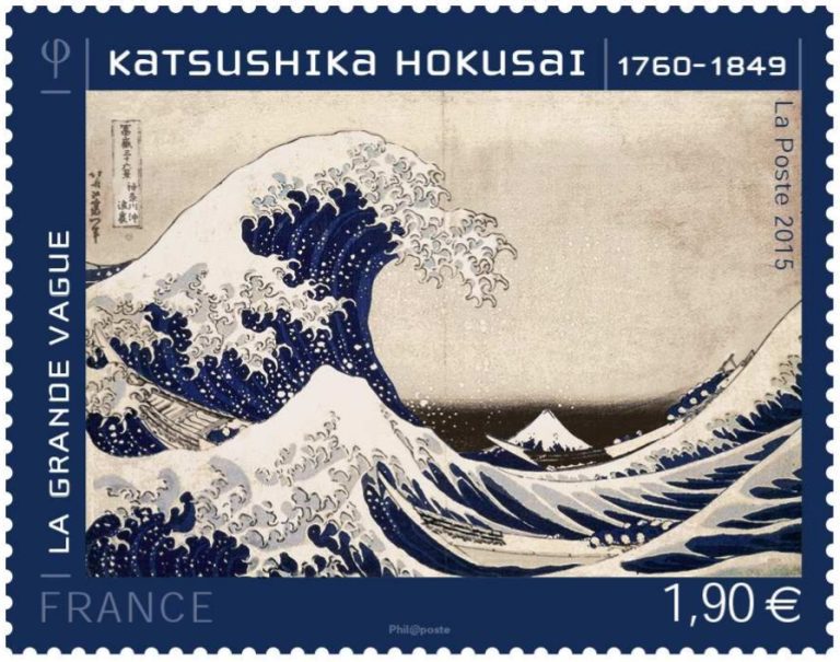 Katsushika Hokusai, né à Edo (actuel Tokyo) fin 1760 et mort le 10 mai 1849, est un des artistes japonais le plus connu au monde. Celui qui se surnommait lui-même « le fou de peinture » est à la fois un peintre, un graveur et un dessinateur talentueux. Hokusai s’est constamment remis en question en 70 ans de création artistique, il changea de nom comme de style. Il a produit une des œuvres les plus connues de l’histoire de l’art « La Grande Vague ». Cette estampe est la première de la série des « Trente-six vue du mont Fuji ». La vague est une synthèse de l’estampe japonaise traditionnelle et de la « perspective » occidentale, d’où un succès immédiat en Europe, et source d’inspiration des Impressionnistes.