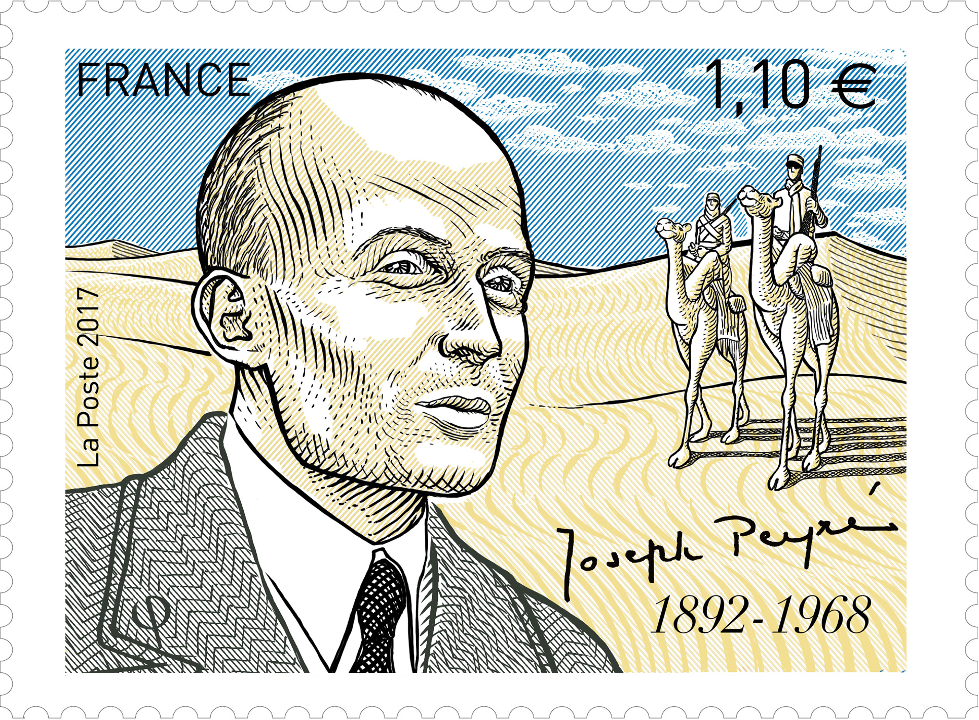 Christophe Laborde-Balen a dessiné et gravé le portrait de Joseph Peyré sur un paysage qui représente le Sahara et des méharistes, pour évoquer le lieu dans lequel se déroule l’action de son roman « L’Escadron blanc » écrit en 1931. Cette œuvre a également été adaptée au cinéma en 1949.