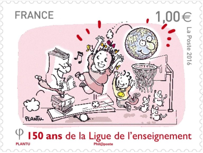 Promoteur de la vie associative, partenaire de l’école publique et des acteurs locaux, la Ligue réunit des hommes et des femmes qui agissent au quotidien pour faire vivre la citoyenneté en favorisant l’accès de tous à l’éducation, la culture, les loisirs ou le sport. C’est ce que Plantu a illustré sur le timbre.