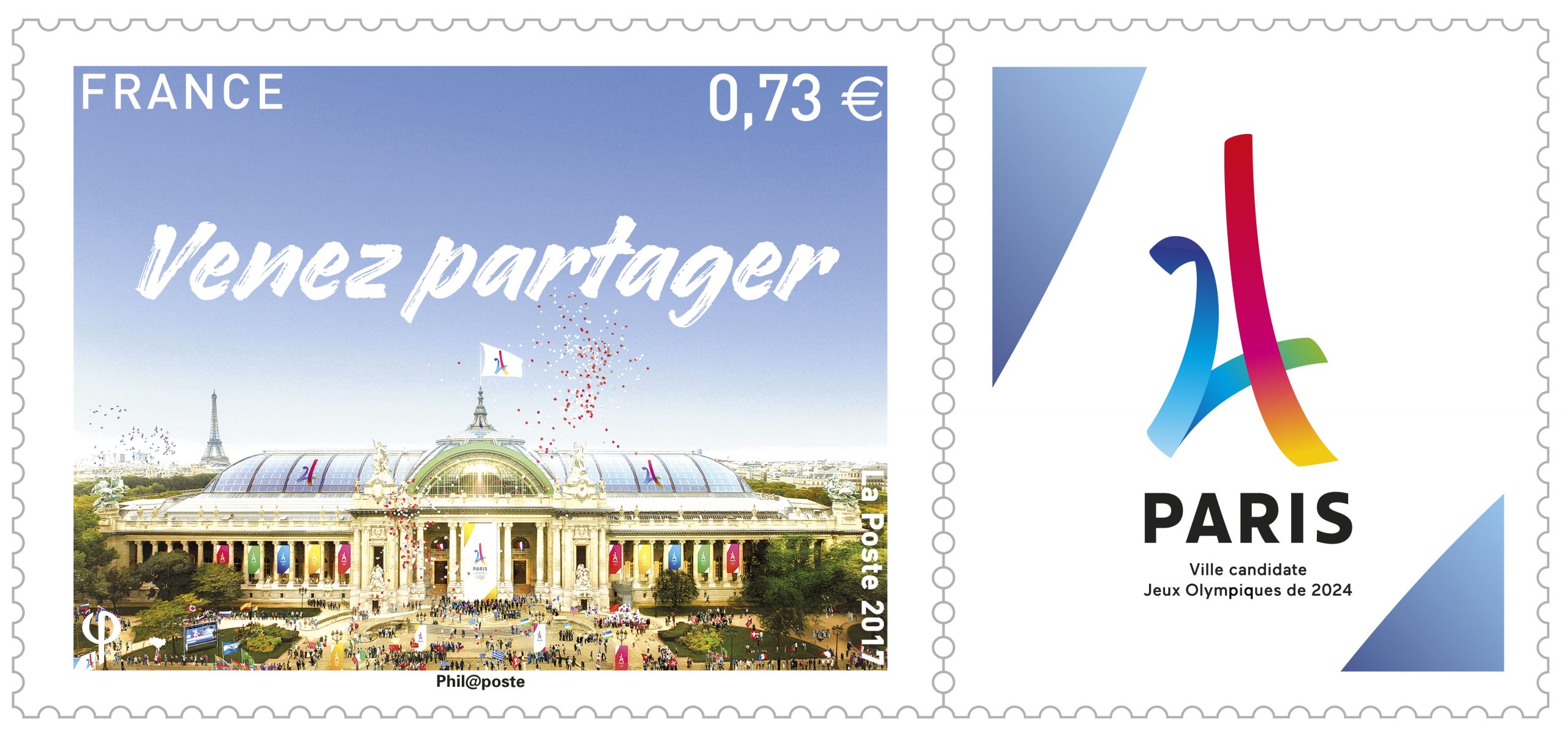 ’Paris 2024’ et La Poste, partenaire officiel de ’Paris 2024’, dévoilent le timbre « Paris 2024 » qui sera mis en vente pour soutenir la candidature de Paris à l’organisation des Jeux Olympiques et Paralympiques 2024.