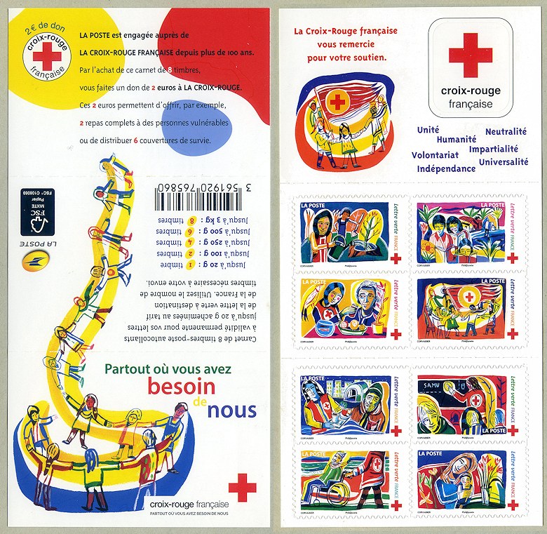 La Poste émet un carnet de 8 timbres ’la Croix-Rouge française’: partout où vous avez besoin de nous’.