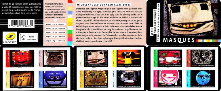 Les 12 timbres sont illustrés par 12 photographies de Michelangelo Durazzo qui illustrent l’extraordinaire créativité de cet esthète français d’origine italienne.